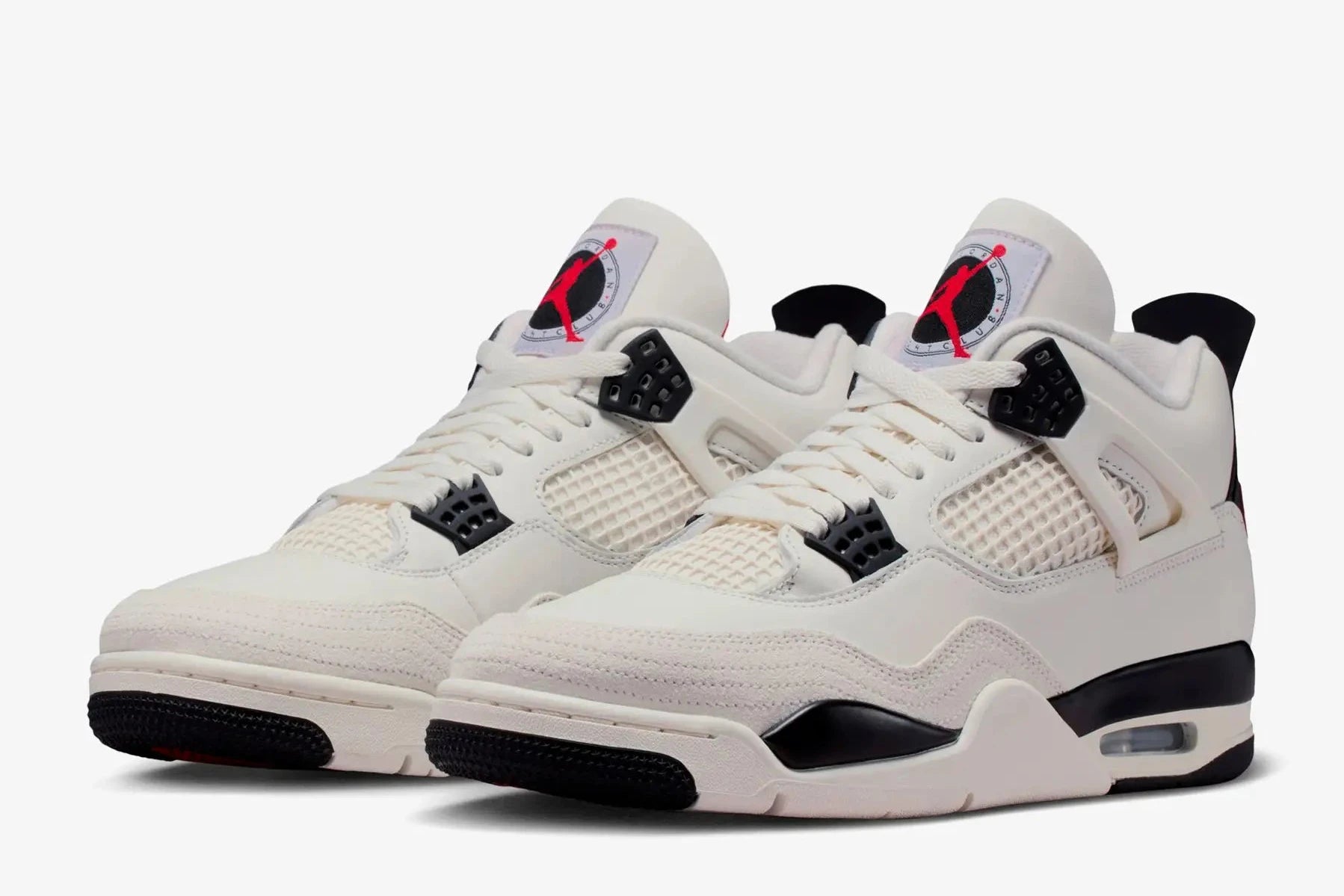 Il Air Jordan 4 Retro „Flight Club“ resta fedele al DNA iconico del modello e si presenta con una composizione di colori chiara e senza tempo. Il bianco domina la tomaia, creando una base tranquilla per i classici contrasti di nero e rosso – una delle combinazioni di colori più leggendarie nella storia di Jordan.