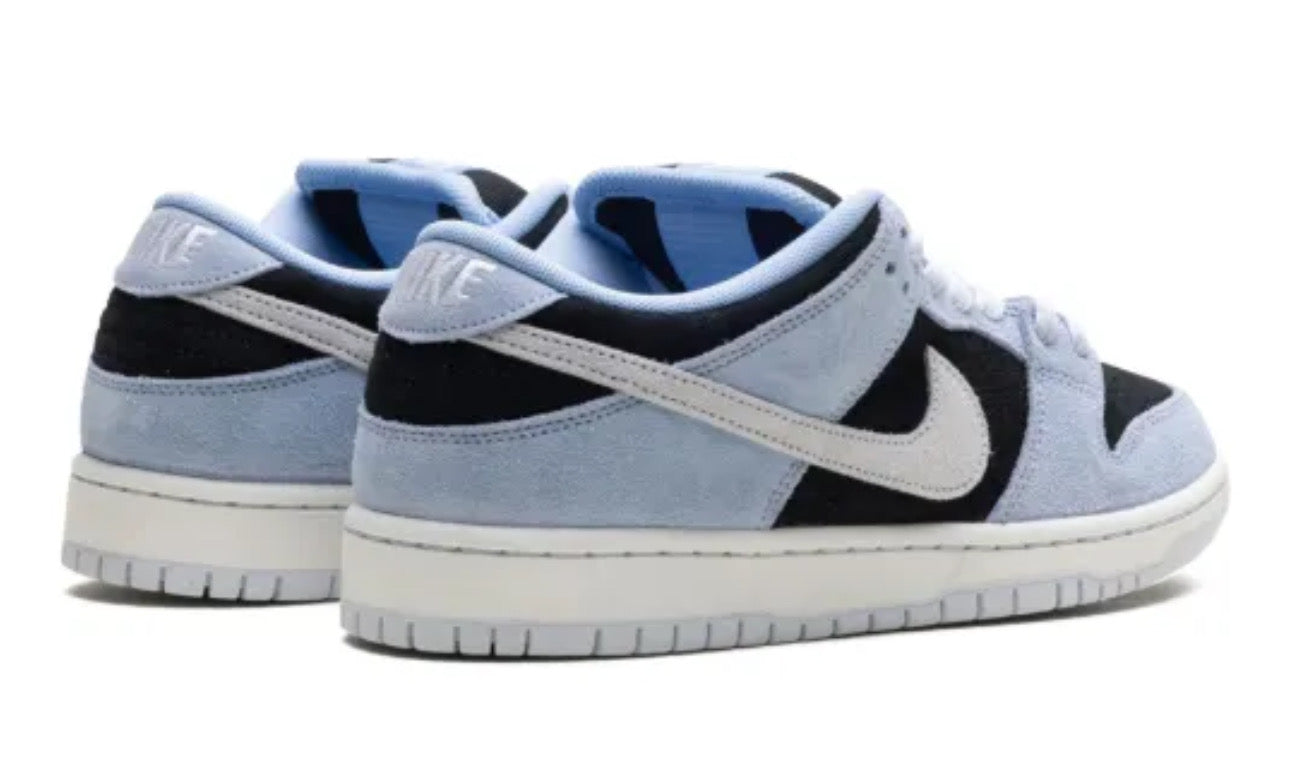 La Nike SB Dunk Low "Aluminum" presenta una nuova interpretazione di un grande classico, mescolando toni freschi e materiali premium. La tomaia in suede blu alluminio offre un'estetica raffinata e distintiva, mentre il suede nero nella sezione centrale aggiunge profondità e contrasto al design. Lo Swoosh in sede Football Grey completa il look con un tocco di eleganza discreta. La suola intermedia bianca e quella esterna grigio chiaro conferiscono un finale pulito e versatile, perfetto per ogni occasione.